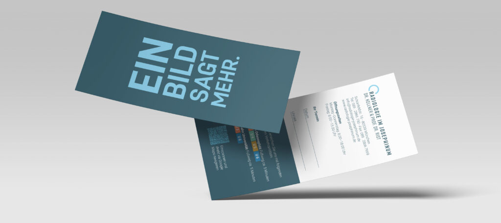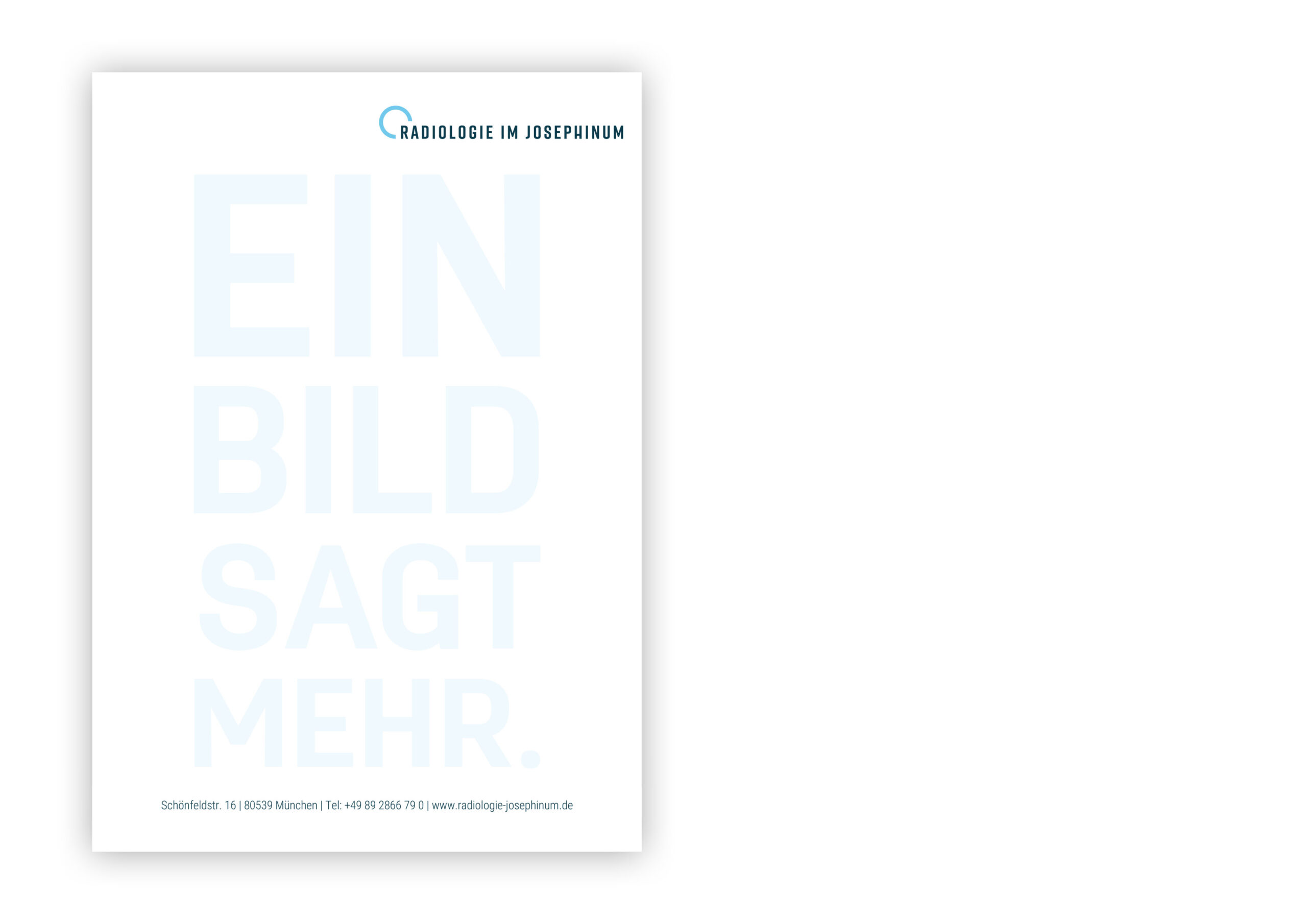 Corporate Redesign inkl. Kreation eines Slogans für die Radiologie am Josephinum in München mit Geschäftsausstattung und Merchandise Artikeln.